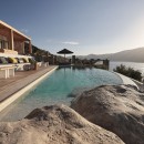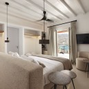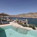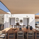 Embracing traditional architecture, the villa seamlessly blends stone and concrete elements, creating an inviting atmosphere complemented by warm colors. Guests are invited to relax in the various lounge areas and enjoy the outdoor BBQ and dining area on the expansive terrace. For the more active individuals, there is an outdoor gym area where you can stay fit while gazing out at the crystal-clear Aegean waters.
