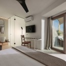 Bedroom 4: Upper level bedroom with a double bed, ceiling fan, A/C, WiFi, TV, and en-suite bathroom with shower, double vanity and WC. Independent outside entrance. 2 guests maximum.
