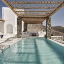 Villa La Piscine in Mykonos is a beautifully renovated luxury property, located in the peaceful area of Houlakia, just a short walk from the iconic Lighthouse. Situated only 5.5 km from Mykonos Town, this stunning villa features six double bedrooms, accommodating up to twelve guests. Guests are treated to breathtaking panoramic views of the sea, with Delos, Rhenia, and Tinos islands in the distance. The villa offers an idyllic setting with comfortable indoor spaces, an infinity swimming pool, an open-air heated plunge pool, an outdoor dining area, and shaded verandas under a pergola, all providing the perfect environment to unwind and enjoy moments of serenity. A perfect blend of modern design, Cycladic minimalism, and bohemian style, the villa is a place where exceptional hospitality and luxurious experiences await.