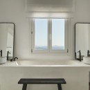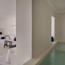 Pool Level: This level includes the entrance, a welcoming area, a dining space, and a fully equipped kitchen, all with direct access to a pergola-shaded veranda featuring an outdoor seating area and a marble dining table. It also houses a double bedroom with its private veranda and a spacious independent living room with an open-air heated plunge pool, offering an unobstructed view through a glass opening. The expansive outdoor space features the infinity swimming pool, a shower, a guest WC, multiple lounge and sitting areas, built-in sunbeds, and a main outdoor dining and food preparation area.