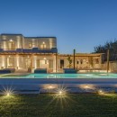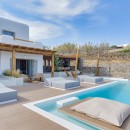 This independent 165-square-meter villa comprises three bedrooms, each with a private bathroom, a guest WC on the ground floor, and a spacious guest house by the pool, accommodating up to 8 adults and 1 child. Its interior and exterior spaces are meticulously designed and luxuriously furnished with the latest in design trends. The villa is fully equipped with high-end audio and video systems, including a Smart TV and a Projector Home Cinema.