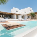 Upon arrival at Villa Tropical Oasis, guests are greeted by a magnificent property that perfectly blends traditional Cycladic design with contemporary elegance.