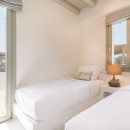 Bedroom 4: Upper floor bedroom with two single beds, A/C, TV, sea view, balcony, and en-suite bathroom with shower, vanity and WC. 2 guests maximum