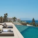 Bedroom 9: Lower floor bedroom with a double bed, A/C, TV, WiFi, safe, lounge area, mini bar, access to the pool area, sea view, and en-suite bathroom with shower, double vanity, and WC. 2 guests maximum. Individual entrance.