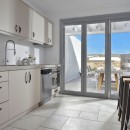 Inside, the villa features an open-plan layout with expansive glass doors that frame breathtaking views of the sea. The use of warm, earthy tones and high-end finishes creates a sophisticated yet inviting atmosphere.