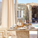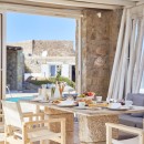 The main three-floor house boasts three bedrooms, while two additional bedrooms are separate and autonomous, nestled around the private pool area. A fully equipped kitchen and a large living room adorned with unique pieces of Cycladic art provide an enchanting atmosphere. The villa offers four traditionally built bathrooms using local materials, as well as two additional WC facilities. Expansive terraces envelop the property, showcasing magnificent vistas of Chora, Mykonos town, and the bay area. With its breathtaking beauty, elegant decor, and meticulously designed spaces, Villa Petrolefko in Ornos is the perfect choice for your unforgettable holiday in Mykonos!