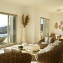 Villa Olympia creates a relaxing and welcoming environment for guests to experience what the locals call “island living.” The property perfectly blends modern minimalism with natural elements like wood and stone. Guests can take a refreshing dip in the infinity pool, enjoy panoramic views, and be captivated by the stunning Aegean sunset.