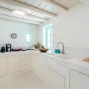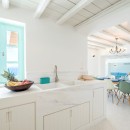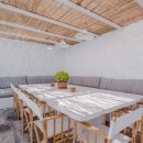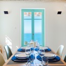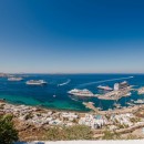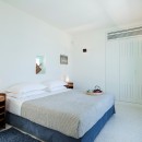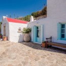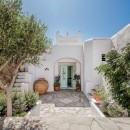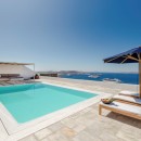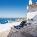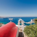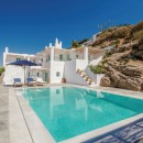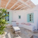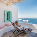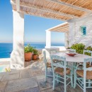 Inside, the villa boasts clean, cool interiors with pristine terrazzo flooring, traditional wood-carved doors, handmade ceramic tiles, and superior local marble used throughout the bathrooms and kitchen. The exterior spaces offer multiple terraces, balconies, and private niches, allowing guests to enjoy the peaceful surroundings in complete seclusion, even when sharing the property with a large group. With its 180-degree panoramic views of the Cycladic islands and Mykonos town, Villa Penthia provides the perfect setting for an unforgettable island getaway.
