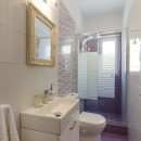 Bedroom 2: Lower floor bedroom with two single beds, A/C, WiFi, and shared bathroom with shower, vanity, and WC. 2 guests maximum.