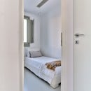 Bedroom 4: Entrance level bedroom with a double bed, A/C, WiFi, TV, balcony with access to the pool and the garden, and en-suite bathroom with shower, vanity, and WC. 2 guests maximum