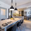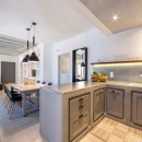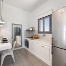 Spanning two levels, the villa greets guests with a generous living room area equipped with a TV. This leads to the indoor dining space and a fully equipped open plan kitchen, which includes a storage room. On this level, you will also find three bedrooms, two furnished with two single beds each, and one featuring a queen-sized double bed. Additionally, there are two bathrooms. The upper level, with a separate entrance, can serve as a guest house and comprises one bedroom with a queen-sized double bed and a sofa bed, one bathroom, and a well-appointed compact kitchen. This level also provides access to the outdoor lounge area.
