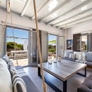 The villa boasts breathtaking views of Santa Maria Beach and its surroundings. From sunrise to sunset, you can relish the beauty of your private grounds, complete with a spacious garden, a fully equipped barbecue area, an outdoor dining space, and a second-level outdoor lounge area offering direct sea views.