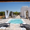 Nestled next to Santa Maria beach, this exquisite luxury, Villa Fuster offers an idyllic retreat for groups of friends or families seeking relaxation and privacy. Located just a stone's throw away from Naousa town, guests can bask in the island's vibrant atmosphere while enjoying their haven (3.5 km away)!