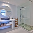 Grand Ambassador Villa is an exceptional luxury property situated in the prestigious area of Santa Maria, just a short walk from the sandy Santa Maria Beach. Covering 380 m², the villa offers stunning panoramic views of the Aegean Sea and the nearby island of Naxos.