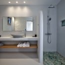 The Upper Level boasts a master bedroom with a walk-in rain shower and a spacious sea-view terrace.