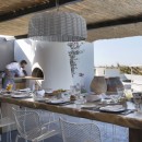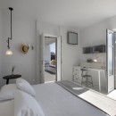 Renowned international interior designer Paola Navone has infused the retreat with her sophisticated Aegean aesthetics. The color palette draws inspiration from the sea and the vibrant landscape, combining whites and dark grays with splashes of vivid hues. Each room seamlessly blends indoor and outdoor elements, allowing the warmth and serenity of the surroundings to permeate the space. Local stone inlays create a rustic charm, harmonizing with luxurious fabrics by Rubelli of Venice and exquisite bath fixtures by Stella of Italy.