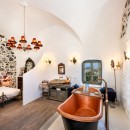 Each space within Santa Croce unfolds its distinctive allure, embracing the villa's past while seamlessly integrating modern comforts. Explore our living spaces, where antique furniture, lofty cross-bowed ceilings, and ancient stonework narrate tales of Santorini's heritage, meticulously restored for an unforgettable stay.
