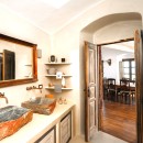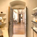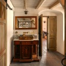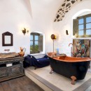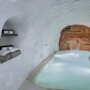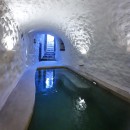 A second exterior stair leads to the third-level terrace, offering a breathtaking panorama of Santorini and its volcano, unique gems of the Aegean Sea. Beneath the historic Santa Croce lies an extraordinary underground cave, a sanctuary hosting an indoor heated pool with a tranquil jacuzzi corner. This hidden gem beckons you into a serene oasis, inviting moments of pure relaxation, peace, and profound serenity amidst ancient walls, providing a luxurious escape where history and comfort converge for privileged moments of peacefulness and spirituality.