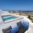 The exterior of Santa Croce stands as a tribute to Santorini's architectural grandeur. A majestic stone-carved staircase guides you to the captivating terrace, offering panoramic views of Santorini's landscapes - a perfect setting for serene mornings and captivating sunsets, complemented by the outdoor jacuzzi on the second-level terrace.