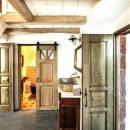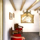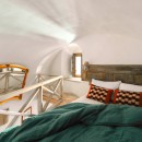 The grand master bedroom on this level, adorned with a bronze double bed and noble handcrafted furnishings, boasts a private copper bath symbolizing luxury and heritage. Two small mezzanines, once used as food storage places, now offer cozy and charming sleeping spaces with double beds.