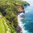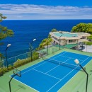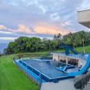 Waterfalling Estate is a one-of-a-kind oceanfront retreat on the Big Island, perched atop the dramatic cliffs of the breathtaking Hamakua Coast. This exclusive haven features a private 85-foot waterfall, an Olympic-sized swimming pool with a two-story waterslide, a spa, a fully-equipped custom gym, a personal nine-tee golf course, a rooftop helicopter pad, and resort-level sports facilities, including a tennis, pickleball, and basketball court with stadium seating.