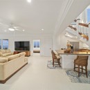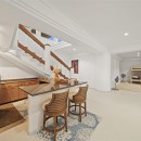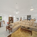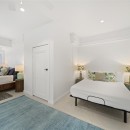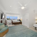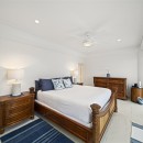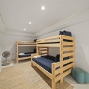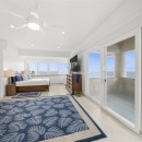 The third upper-level bedroom has a California king bed and an en suite bathroom. All upper primary suites have private patios. The lower-level primary suites each feature California king beds, en suite full bathrooms, and direct access to the covered lanai and pool deck. The upper-level bunk room, located near the primary suites, offers two full beds and two twin beds, perfect for families or groups traveling together.