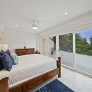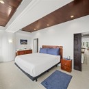 Bedroom 5: Lower floor bedroom with a king-size bed, ceiling fan, A/C, WiFi, ocean view, access to the pool, and en-suite bathroom with shower, vanity and WC. 2 guests maximum