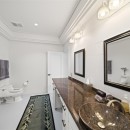 The two upper-level primary suites each include a California king bed, seating area, 60” smart TV, and two separate bathrooms—one with a soaking Jacuzzi tub, toilet, and sink, and the other with a shower, toilet, and sink. One suite also features an additional queen bed.