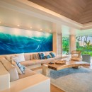Floor-to-ceiling glass walls seamlessly connect the interior to the breathtaking views and soothing sounds of the ocean.