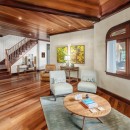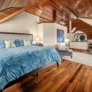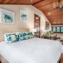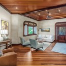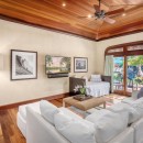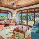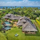 The estate includes a main house and a guesthouse, thoughtfully connected by a covered breezeway. Inside, the five spacious bedrooms and flexible sleeping arrangements can comfortably accommodate large families or groups. Elegant interiors blend modern comforts with island-inspired decor, while the open floor plan invites ocean breezes and natural light.