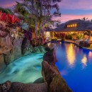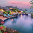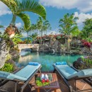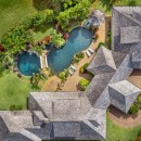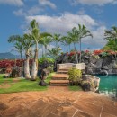 The Anini Vista Drive Estate is a luxurious retreat perched above Kauai’s picturesque Anini Beach, offering breathtaking ocean views and unparalleled serenity. This private estate is designed for relaxation and connection, featuring a stunning lagoon-style saltwater pool with cascading waterfalls, a grotto, a hot tub, and a charming bridge. The property’s expansive tropical gardens provide a lush backdrop for outdoor activities or tranquil moments.