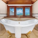 Bedroom 1: First floor Master bedroom with a king-size bed, A/C, WiFi, walk-in closet, private terrace, ocean view, and en-suite bathroom with bathtub, shower, double vanity and WC. 2 guests maximum