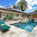 The unique pod-style design of the home includes six bedrooms and six bathrooms, thoughtfully arranged to provide privacy and comfort. The master suite occupies its own private pod, while a guest suite is located in the main house. Two additional guest suites open directly to the pool courtyard, creating an inviting layout perfect for families or groups traveling together.