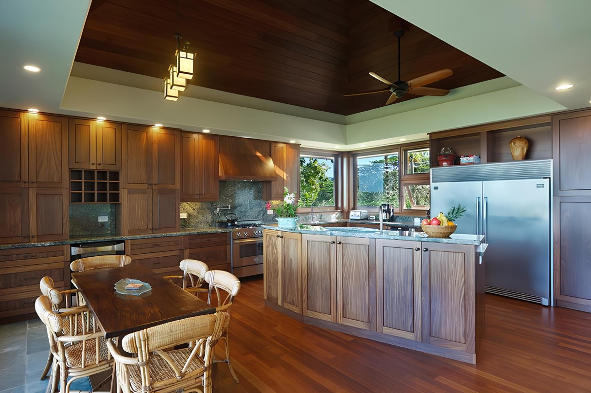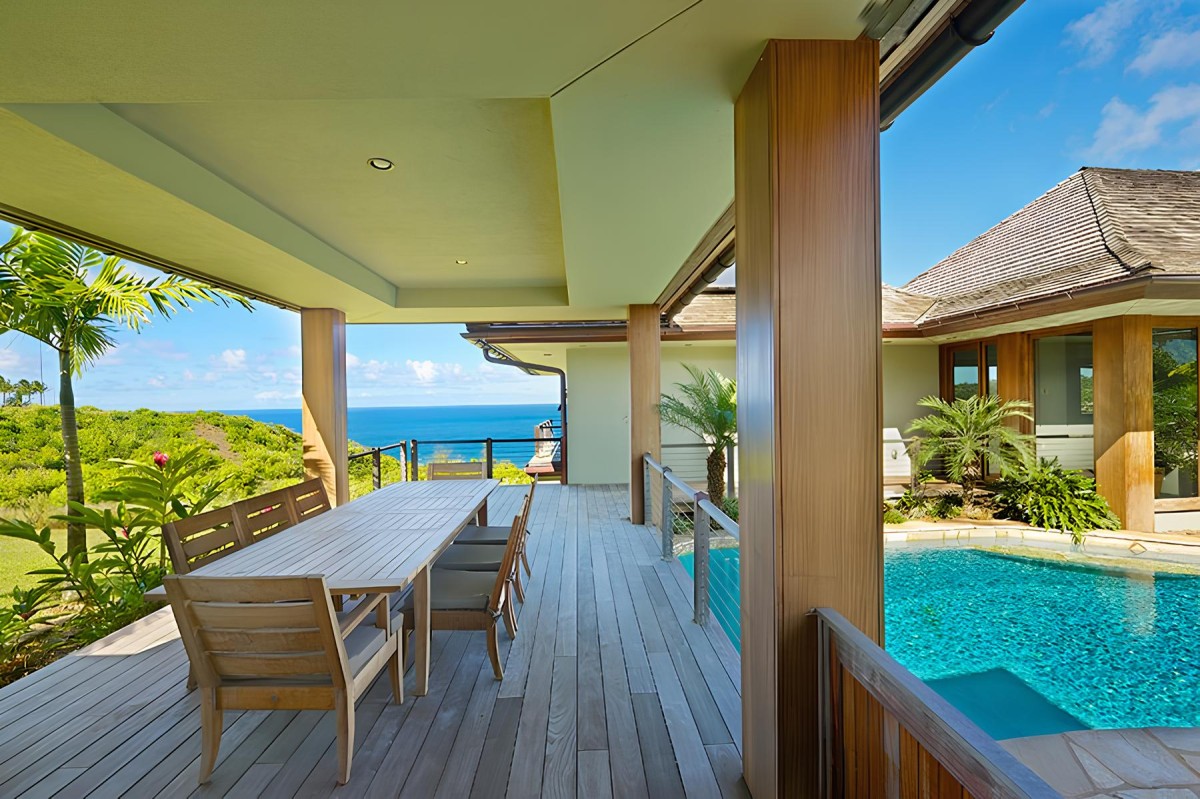 This home also boasts an elevated setting, giving you unobstructed views of the turquoise waters of Kalihiwai Bay and the surrounding coastline. The sounds of the ocean and the gentle breeze create a tranquil atmosphere that's hard to leave behind. Whether you're enjoying your morning coffee on the balcony or stargazing from the hot tub at night, every part of Kalihiwai Bay Estate is designed to make your stay unforgettable.