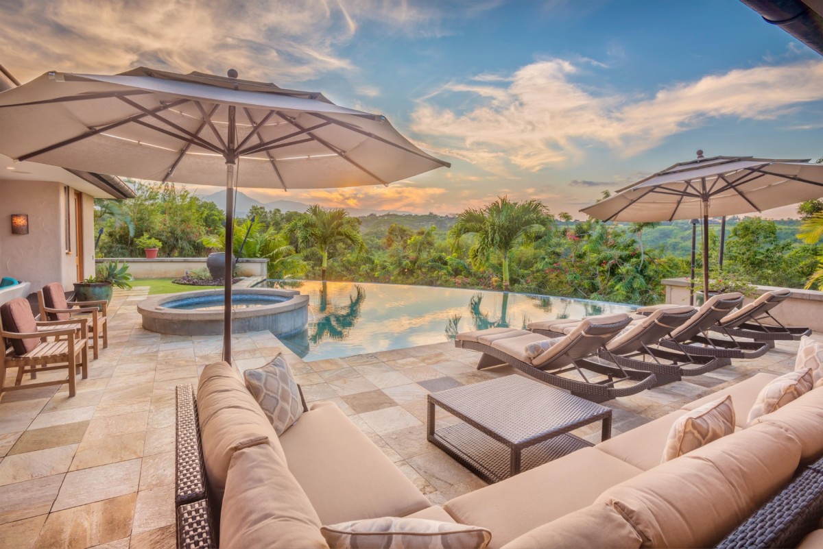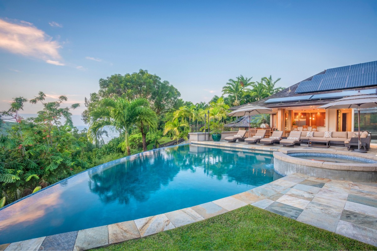 Inside, the home is spacious and serene, offering a seamless blend of indoor comfort and outdoor living. Step outside to your private pool courtyard, where mountain and ocean views create the perfect backdrop for relaxation. Enjoy the outdoor dining area, complete with a BBQ grill, shower, and hot tub—ideal for sunset meals or starlit soaks.