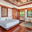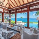 Bedroom 1: Master bedroom with a king-size bed, lounge area, ceiling fan, A/C, WiFi, dressing room, walk-in closet, ocean view, private terrace, and en-suite bathroom with shower, vanity and WC. 2 guests maximum