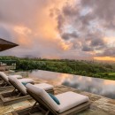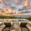 A private infinity-edge pool, a gourmet kitchen, a media room, and lush tropical gardens with ponds.