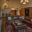 This home has an open floor plan so the group can stay in contact throughout the day. There are various options for relaxation and entertainment, such as a back patio that features a fire pit. There’s also a sitting area on the deck and a living area with a game room and a fireplace. Guests can enjoy spending time together while playing pool, enjoying the arcade machines, or competing over stick hockey. With so many amenities, this villa is an excellent choice for vacationers to Idaho.