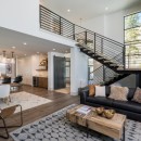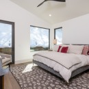 Ascend the floating staircase to discover a serene lounge area, complete with plush armchairs, and two beautifully-appointed guest bedrooms with stunning vistas.