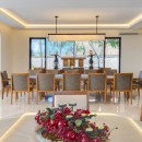 The Pala itself is a magnificent six-bedroom villa that blends regal elegance with an intimate ambiance. The villa features a variety of luxurious living spaces that open to the pool, gardens, and ocean. Four equally sized and private ensuite guest rooms are separated by sliding screen doors, allowing for flexibility as private lounges or children’s bedrooms. Below the villa’s luxurious second-floor master suite is the fifth guest room, offering unrivaled ocean and beach panoramas. The villa also boasts four dining areas, a spa treatment room, a fitness room, and a children’s playroom, providing ample space for ultimate relaxation.