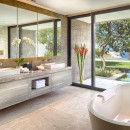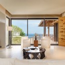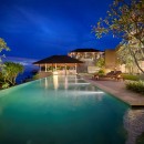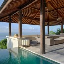 Half of the Sohamsa Ocean Estate is the Villa Soham. The five-bedroom villa combines with the four-bedroom Villa Hamsa to complete the estate. Both modern villas rest atop a cliff above the tip of the Bukit peninsula.