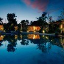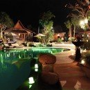 This stunning four-bedroom home provides guests with a feast for all the senses. There is plenty of open-air living space in which to spread out, including five separate living pavilions in which to lounge, eat, relax, and make memories. All five of these living, dining, and sleeping pavilions are constructed with original teakwood pillars. They make a beautiful structure to surround the pool, which is reminiscent of a glittering lagoon.