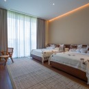 Each of the six ensuite bedrooms is thoughtfully styled, blending comfort with clean-lined elegance. The villa also caters to every kind of traveler, from wellness seekers to families, with features like a private gym, yoga deck, ice bath, and a variety of cozy corners for rest or entertainment.