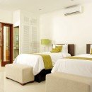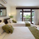 Bedroom 4: Upper floor bedroom with two single beds (can be made up as a king-size bed), A/C, Satelite TV, DVD, balcony, garden view, and en-suite bathroom with shower, vanity, and WC. 2 guests maximum