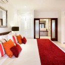 Bedroom 1: Ground floor Master bedroom with a king-size bed, A/C, ceiling fan, TV, DVD, access to the terrace and en-suite bathroom with bathtub, indoor and outdoor shower, double vanity, and WC. 2 guests maximum