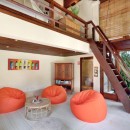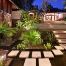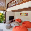 This vacation home is made of separate pavilions all nestled inside 1500 sq. meters of beautiful gardens. It boasts three bedrooms with ensuite bathrooms as well as a study room that can fit two children for sleeping. It also has a breakfast and drink bar outside in the dining pavilion.