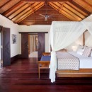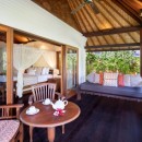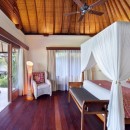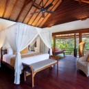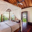 When you come upon the home, you’ll use the villa’s private gates and descend the white palimanan stone steps into the grounds. Your eyes will land upon both the large-scale main living and dining pavilion as well as the stunning, sparkling swimming pool with views of the Pangi River. Make sure to take in the pink hibiscus bushes, exquisite stone statues, and the Koi-filled lotus pond. There’s no lack of luxury at Villa Bunga Wangi.
