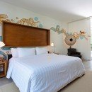 This home is uniquely styled with a large L-shaped living and dining room as well as an open-concept kitchenette to make it easy for everyone to spend time together enjoying all aspects of the vacation. Every part of the home was thoughtfully chosen, integrating sea life and Indonesian art.