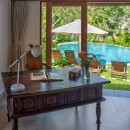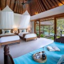 Outside the home, feast your eyes on the stunning stone swimming pool that is surrounded by stone statues and frangipani flowers. Look closely and you’ll see the additional bedroom bungalow, complete with its own ensuite bathroom. Here in the garden bungalow, you can see the river valley and all of its native fauna.