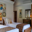 Bedroom 2: Bedroom with two single beds, ceiling fan, A/C, WiFi, safe, garden view and en-suite bathroom with a bathtub and shower, vanity and WC. 2 guests maximum.